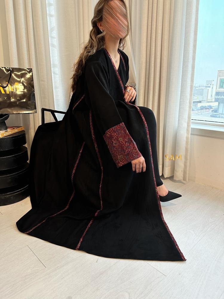 عباية شمواه شتوي كم كشميري . تتميز هذه العباية بتصميم فريد يجمع بين القماش الشمواه الفاخر وأكمام الكشميري ، مما يمنحك إطلالة أنيقة ومريحة في الوقت نفسه.