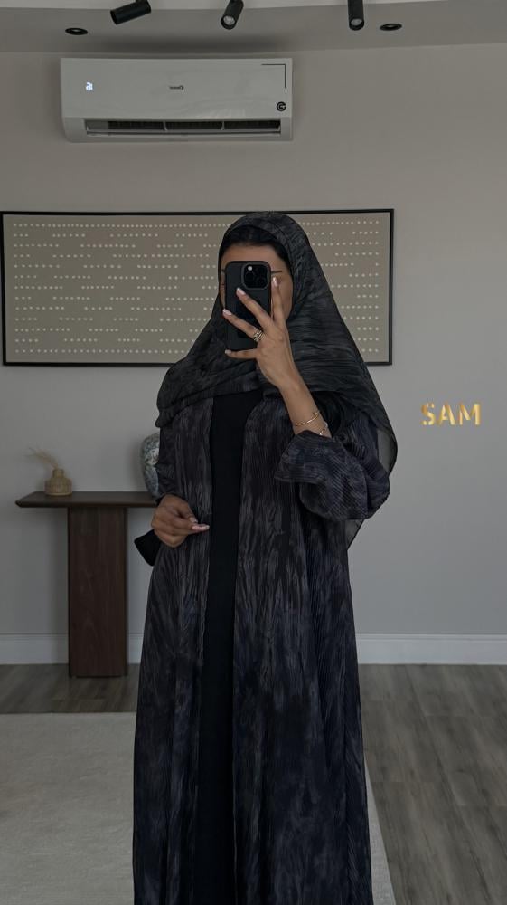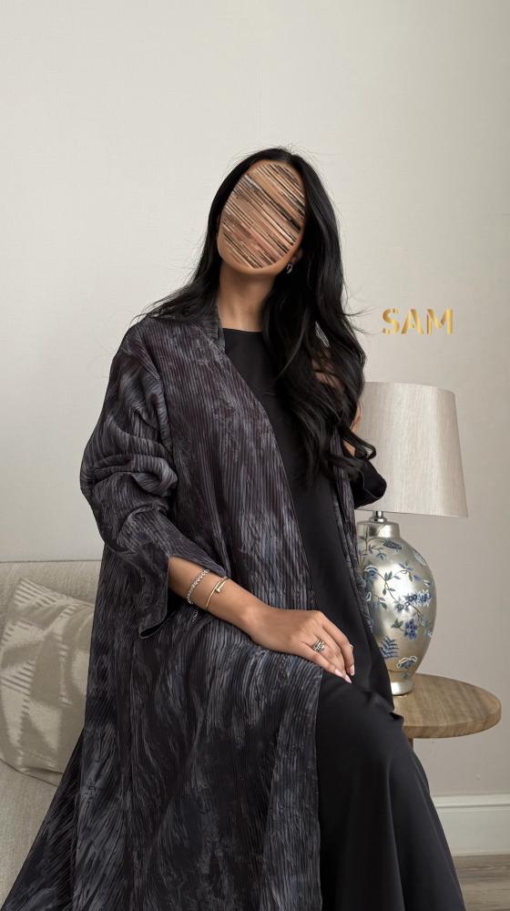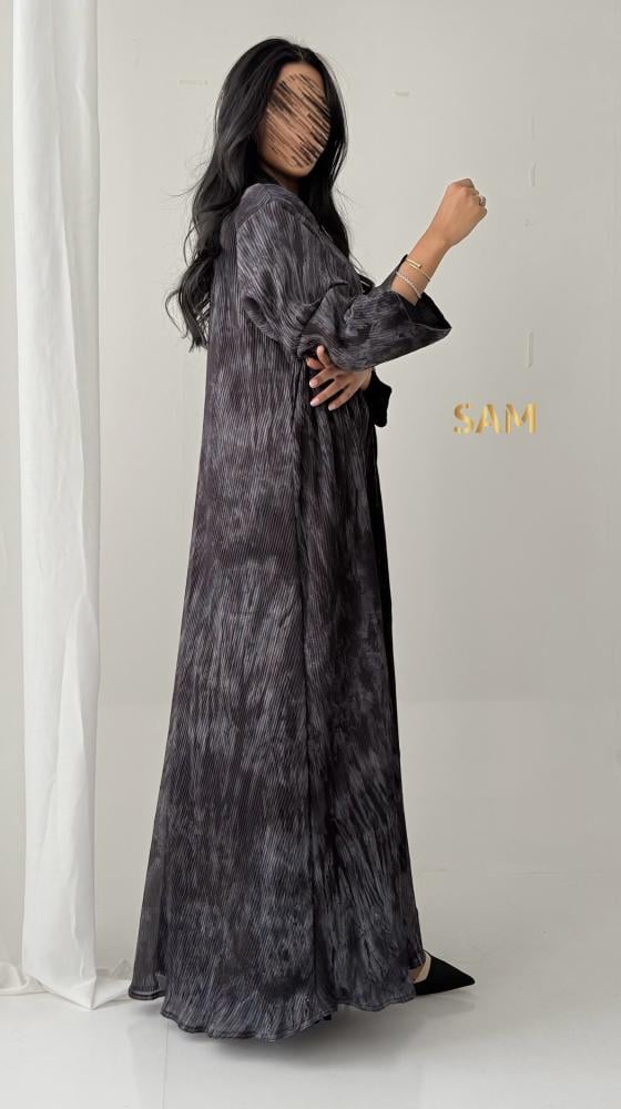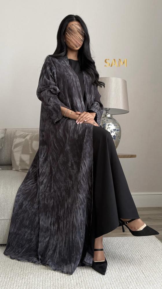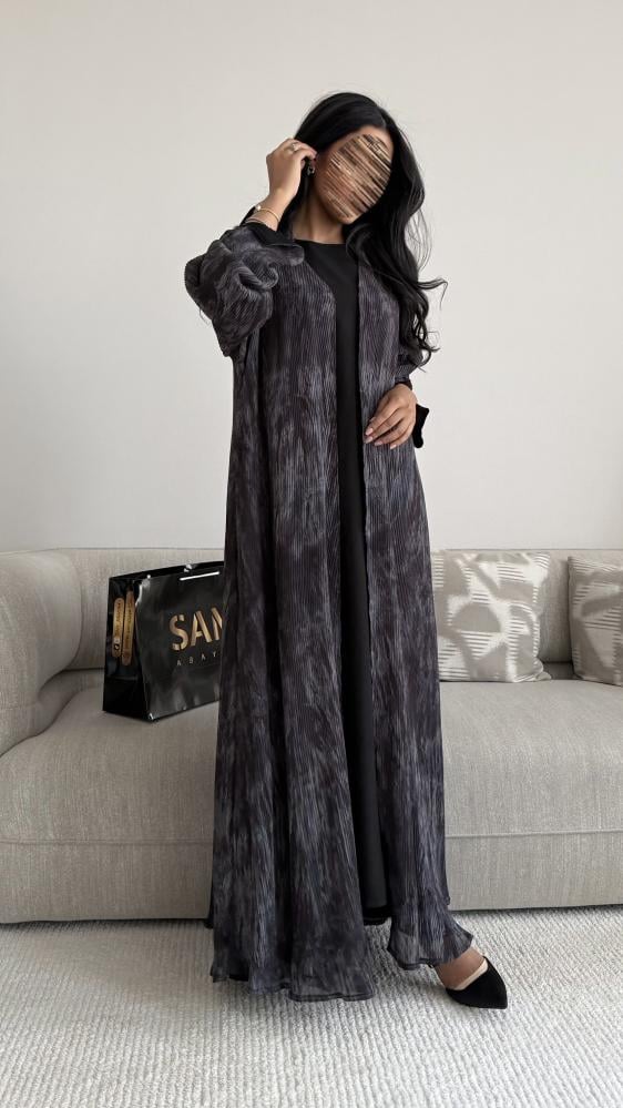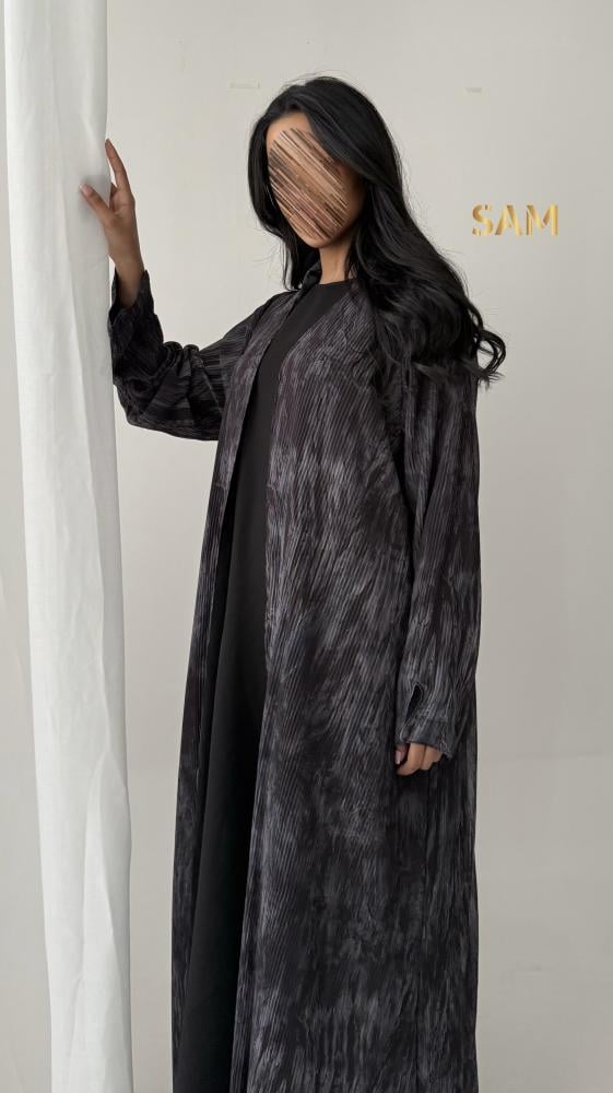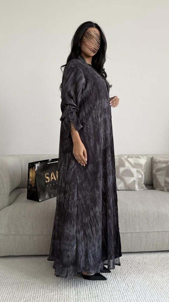 عباية قماش شيفون مكسر باللون الرمادي قصه A-Line